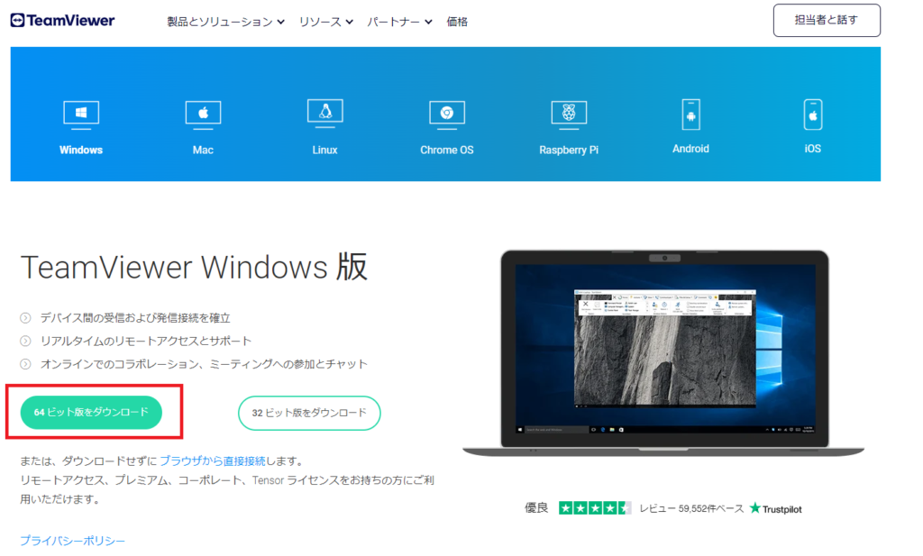1.TeamViewerをダウンロード