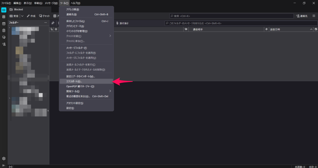 画面上部のメニューから、「ツール」→「エクスポート」をクリックします。