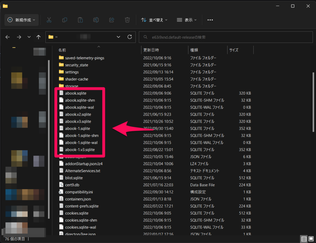 3.プロファイルフォルダ直下にあるアドレス帳データベースを確認